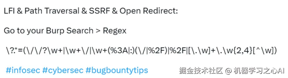 先通过BurpSuit记录所有的流量包,寻找 LFI & Path Traversal & SSRF & Open Redircet漏洞。