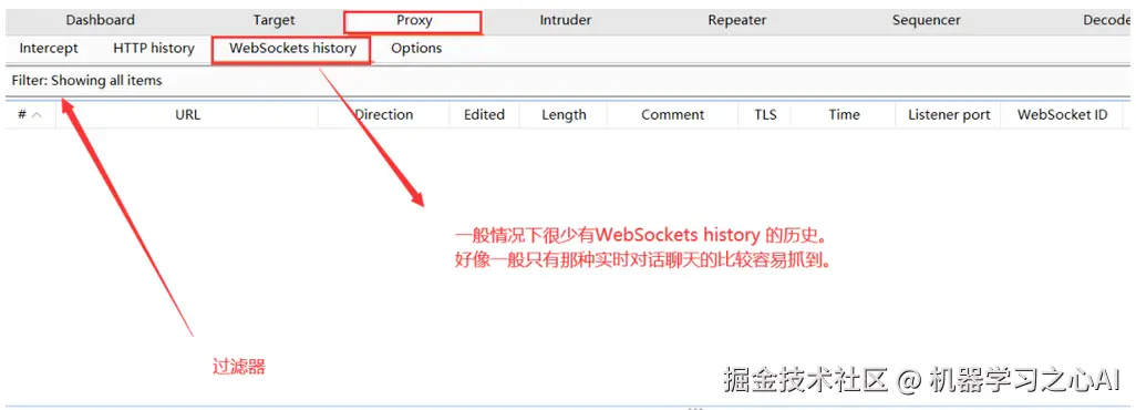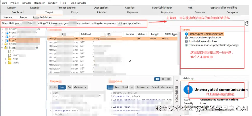 记录了所有被拦截的请求和响应,使用户能够查看和分析以前的请求和响应。用户可以使用过滤器来搜索特定请求和响应,以便更轻松地查找和分析流量。