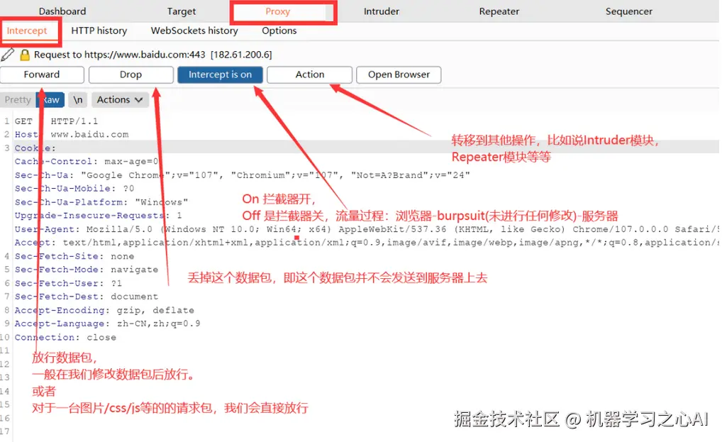 - 在Proxy -> Options下,可以配置Proxy监听的端口,也可以设置Intercept选项,如拦截规则、跳过规则、处理流量大小等等。2. 在Proxy -> Intercept下,可以启用和禁用拦截器以控制哪些请求被拦截。3.在Proxy -> HTTP history下,可以查看所有的HTTP/HTTPS请求和响应。4.在Proxy -> Match and Replace下,可以使用正则表达式来替换HTTP/HTTPS请求和响应中的文本。5. 在Proxy -> Options -> Match and Replace中,可以配置替换规则以自动替换某些请求和响应的文本。