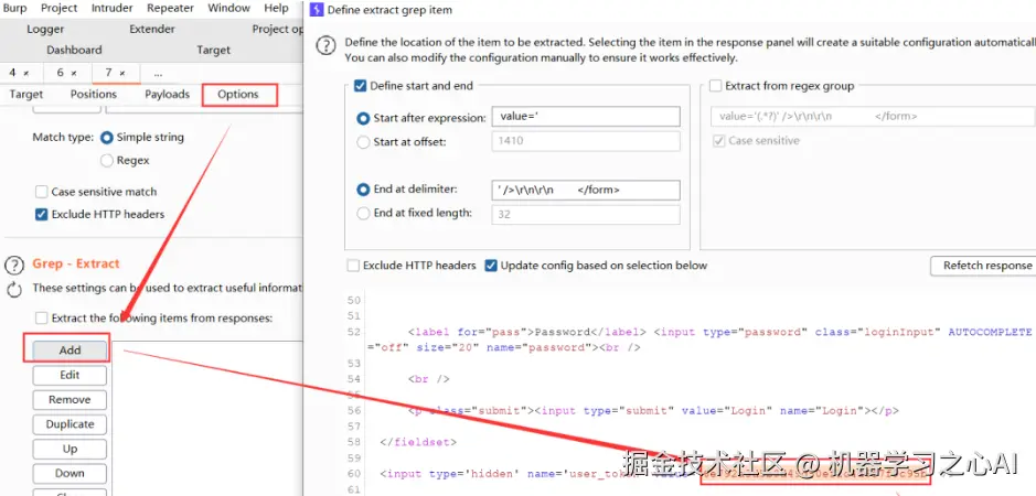 注意:因为Recurisive grep 我们一般用于匹配csrf-token之类的。这就要求我们需要注意两个点:1.线程必须为单线程。2.我们是否需要设置第一个请求的token。(因为我们的token是从请求包里出来的,如果我们携带的token与此次的token不一样,就不会让你登录。即我们要去找一个正常的请求,记录它的token当初初始token进行操作。有点绕,慢慢理解)