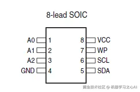 24C02芯片的引脚说明 | 引脚名称 | 说明 | | A0-A2 | 地址输入线 | | SDA | 数据线 | | SCL | 时钟线 | | WP | 写保护 | | GND、VCC | 提供电源 |