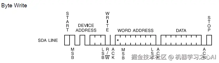 对24C02芯片进行写字节操作的时候,步骤如下: