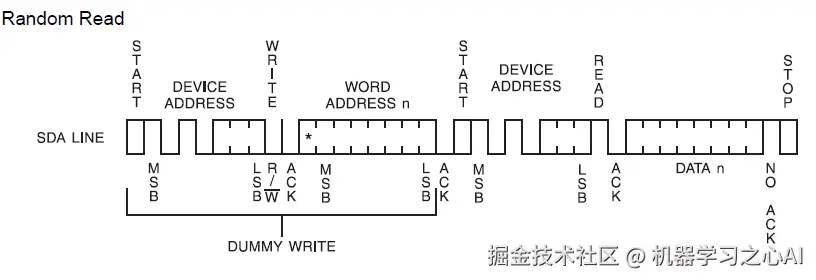 对24C02芯片进行读字节操作的时候,步骤如下: