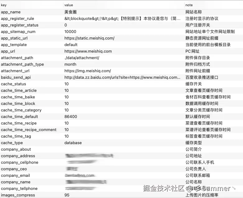 首先,我们需要根据自己的情况建存放配置信息的表,下面是我的数据表参考: