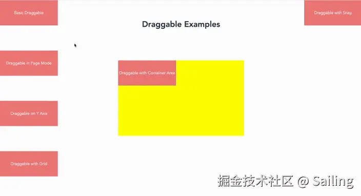 我们为一个拖拽设置了初始位置,并允许用户自由拖动。drag-kit 的设计考虑了性能优化,确保在频繁拖拽时不会出现卡顿或延迟。