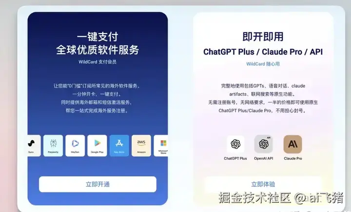 这是一个网站,里面有各种版本的GPT可用,有GPT3.5、GPT4.0、GPT4.0 turbo,还有GTP的接口和25种各种ai平台的订阅和使用功能。聊天对话很丝滑,Wildcard