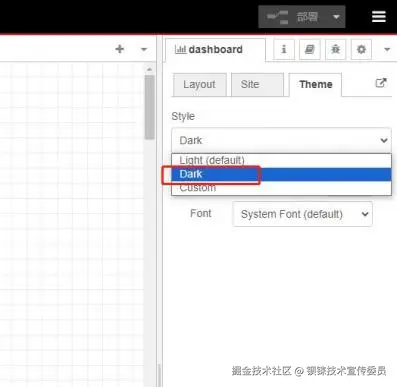模块安装成功后,执行以下操作,可以将 dashboard 图形显示主题切换位“ dark ”。