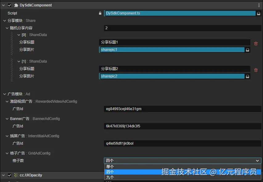 其中分享模块和流量主广告模块相关配置可视化调整。