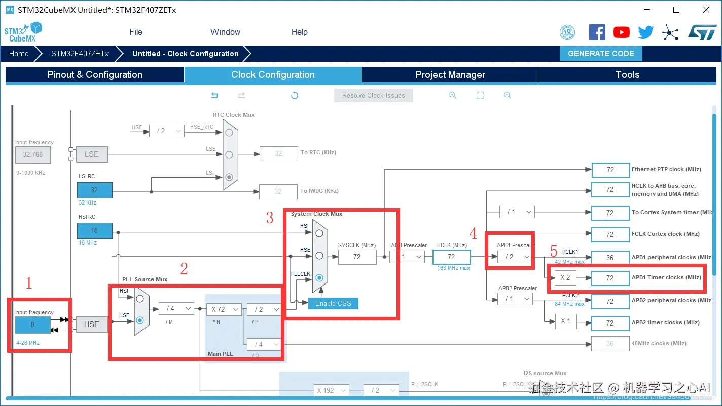32的时钟树框图 如果不懂的话请看《【STM32】系统时钟RCC详解(超详细,超全面)》