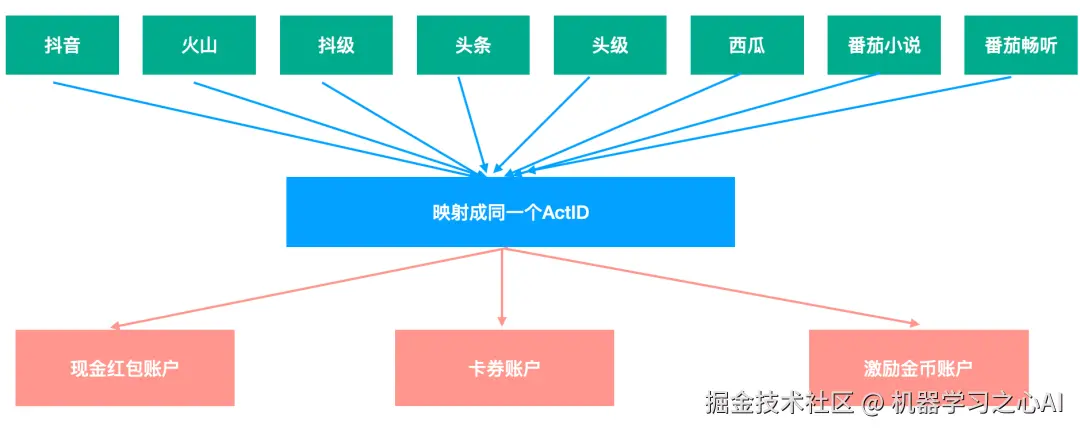 用户可以在任意一端参与字节的春节活动获取奖励,以抖音红包雨现金红包入账场景为例,具体的业务流程如下: