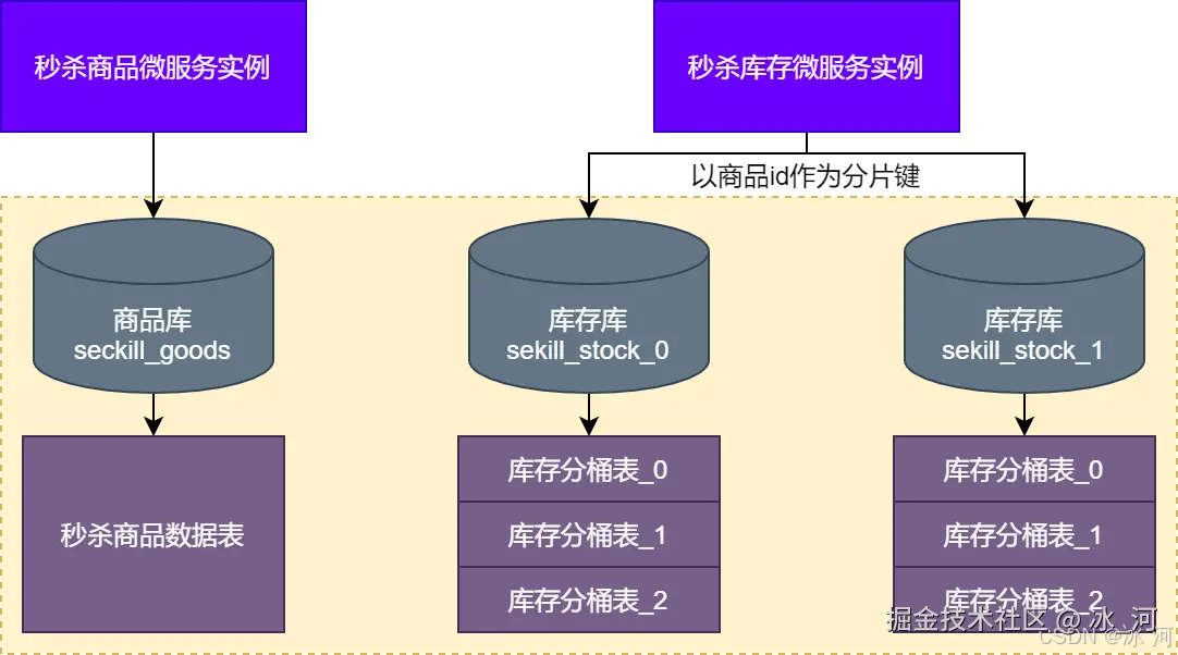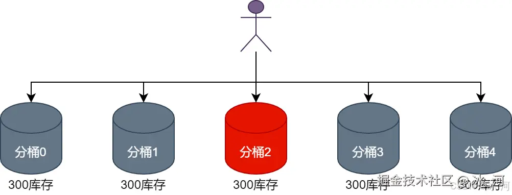 - 根据秒杀商品对库存进行分桶设计:对于秒杀系统来说,分库分表主要提升的是多场秒杀活动的并发处理能力,而分桶设计主要解决的是单场秒杀活动的并发处理能力。