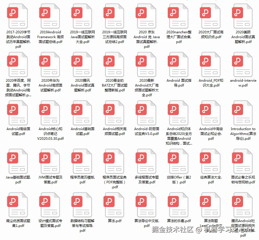 这里附上上述的面试题相关的几十套字节跳动,京东,小米,腾讯、头条、阿里、美团等公司21年的面试题。把技术点整理成了视频和PDF(实际上比预期多花了不少精力),包含知识脉络 + 诸多细节。