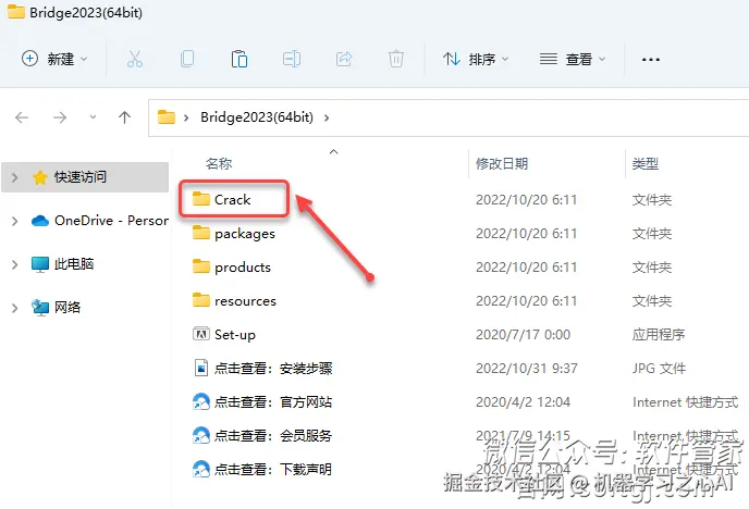 7.打开安装包解压后的【Bridge2023】文件夹,双击打开【Crack】文件夹。