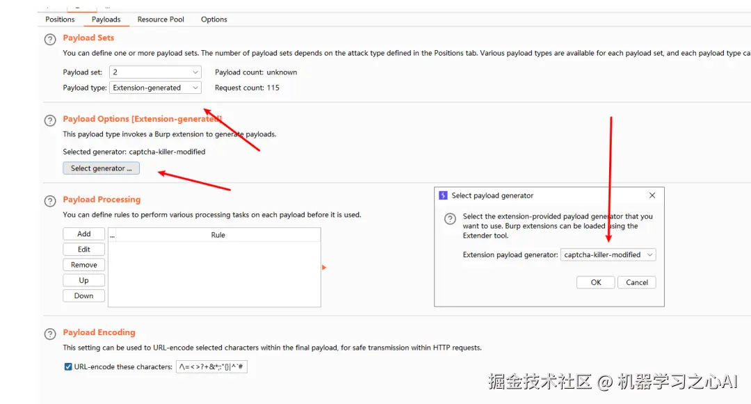 - 属于验证码的那个变量所属的payload就选择Extension-generated