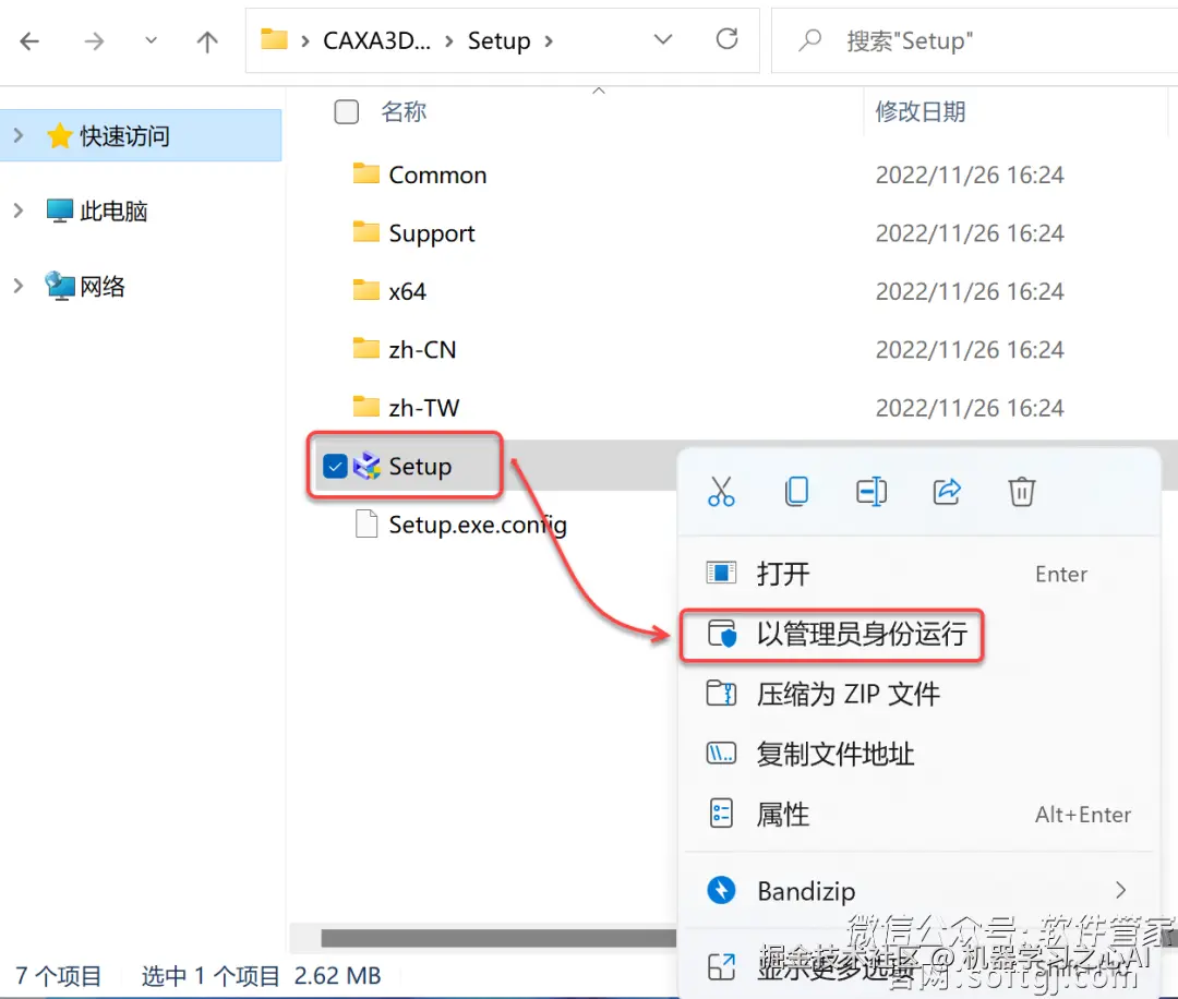 3.鼠标右击【Setup】选择【以管理员身份运行】。