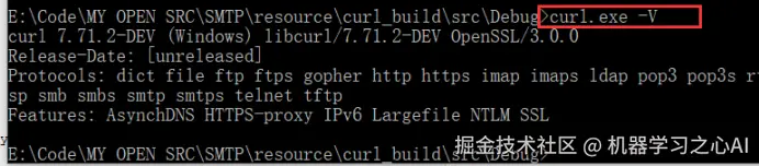 生成有curl后,在cmd中做如下验证,如果提示libcurl-d.dll缺失,从刚生成的库中拷贝到curl.exe所在目录