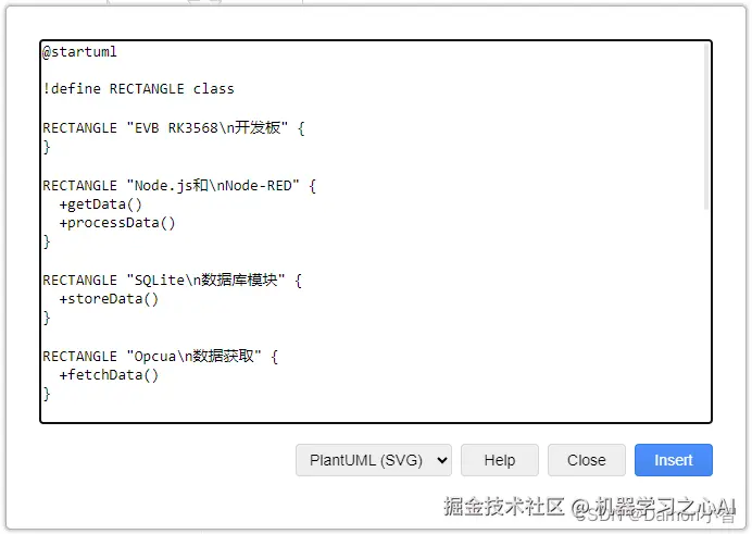 draw.io 结合 PlantUML 提供了强大的 UML 图绘制功能。PlantUML 是一种基于文本描述的 UML 图生成工具,通过在 draw.io 中嵌入 PlantUML 语法,用户可以快速绘制出各种 UML 图,如类图、时序图等。