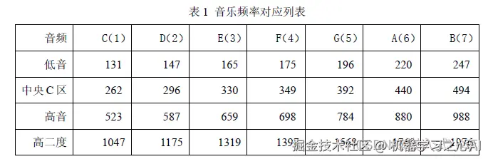 音乐频率对应列表如表1 所示,根据表1 和公式1,可以算出不同音符的预置数。
