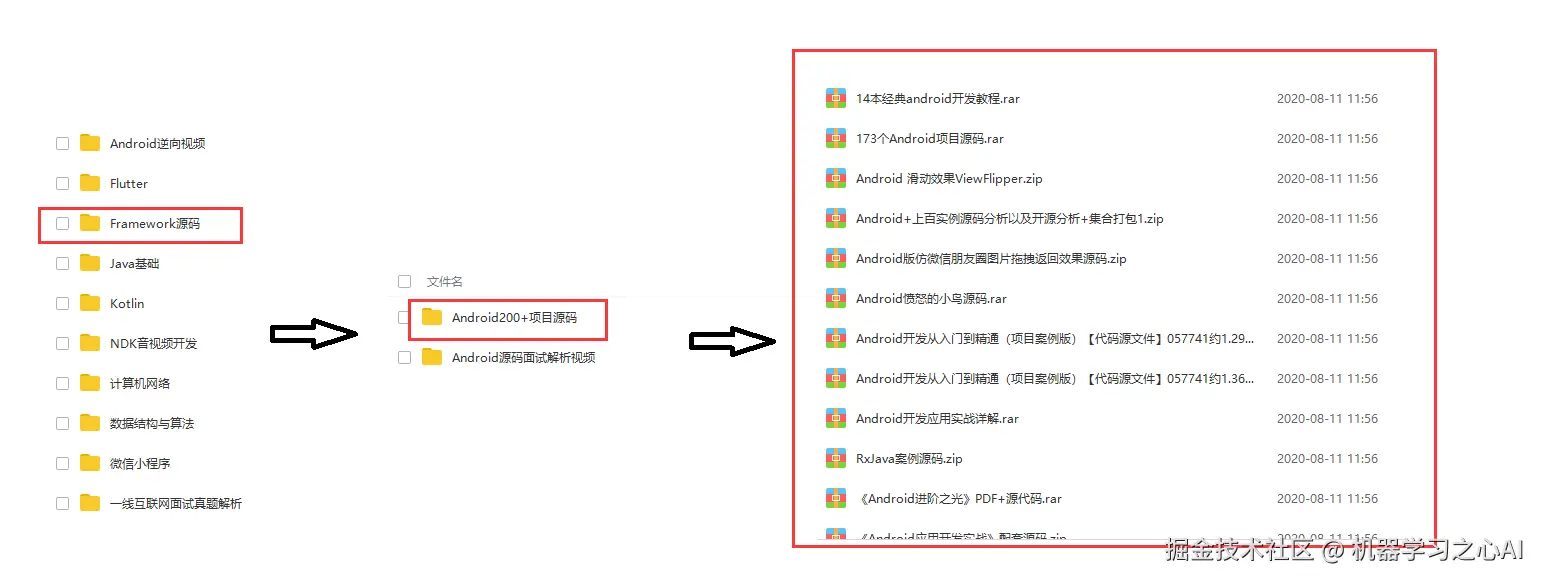 一共十个专题,包括了Android进阶所有学习资料,Android进阶视频,Flutter,java基础,kotlin,NDK模块,计算机网络,数据结构与算法,微信小程序,面试题解析,framework源码!