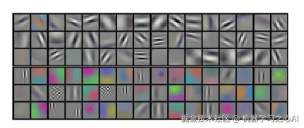 图3:在输入图像上由第一个卷积层学习的96个大小为