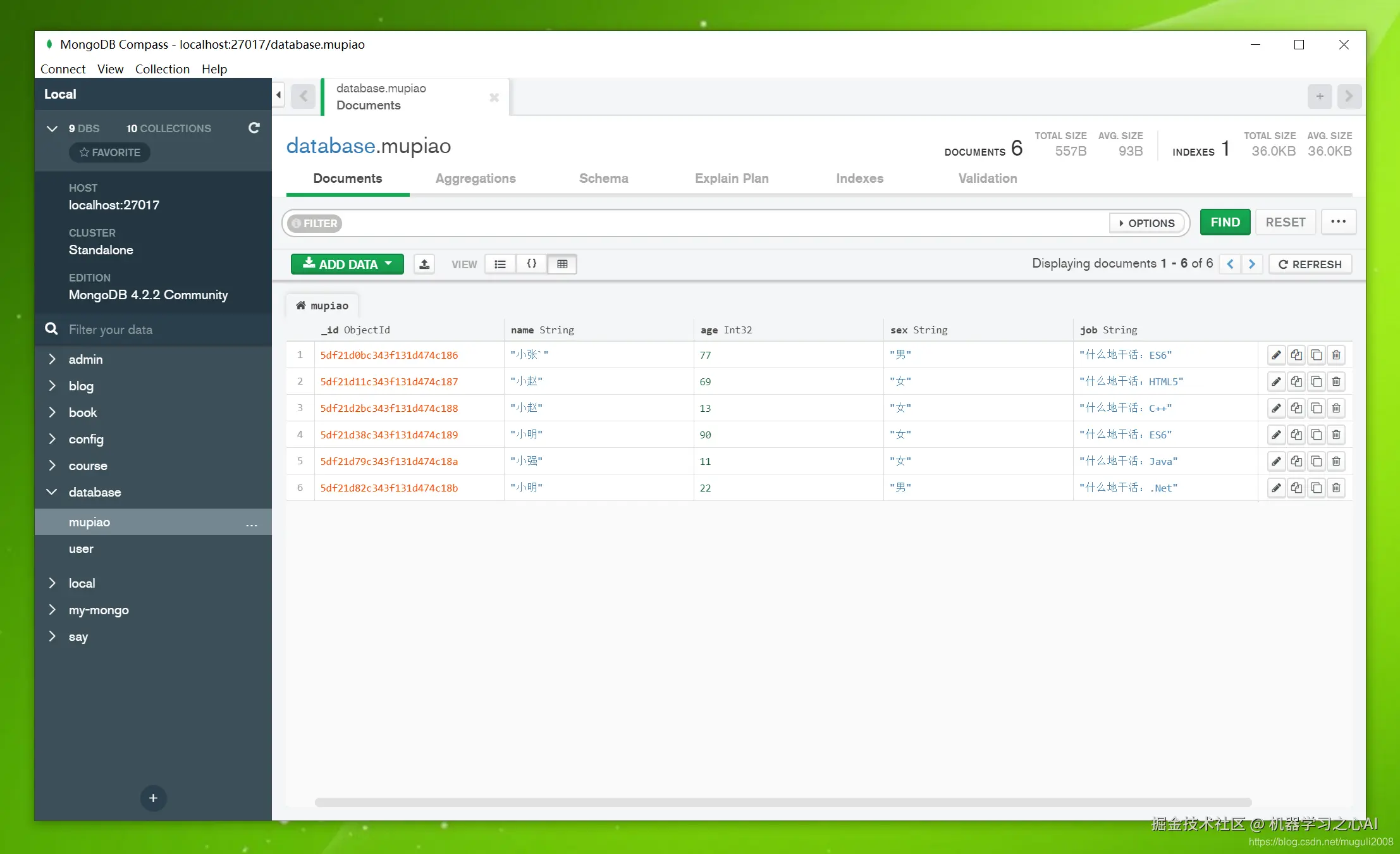 4、在MongoDB中,集合中的数据内容叫作:Documents "文档"!