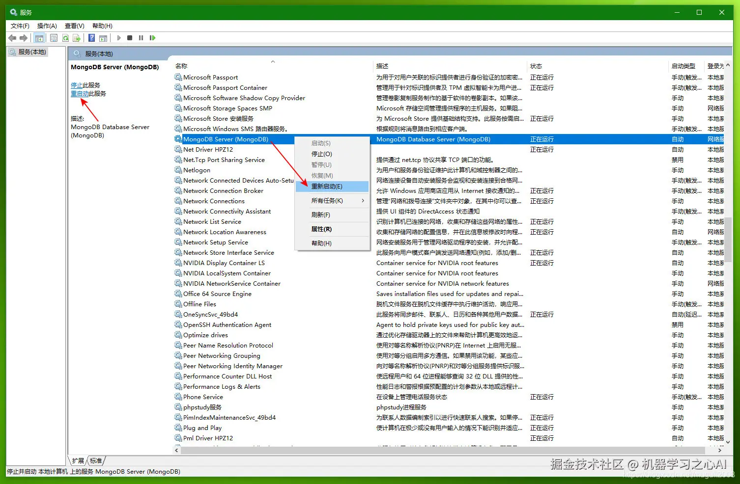 2、输入 services.msc 命令便可以查看到 MongoDB Server (MongoDB) 服务啦!!