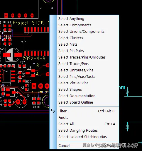 首先鼠标右键,选择select anything(在不选中任何器件的情况下右键,要不会显示不同的菜单),然后双击封装可以走线。