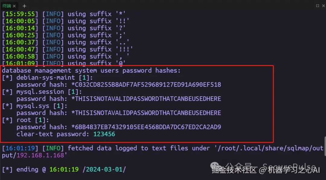 - –passwords:获取数据库的密码 使用这个命令 sqlmap找到密文时,会提示你是否进行hash破解 如果需要选择合适的字典。