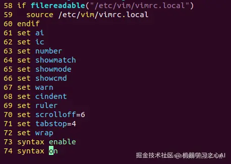 (Tips:如果直接输入vim /etc/vim/vimrc也是可以进去进行文件修改,但会出现只读模式,权限不够的情况,使用:wq! 也是无法解决的,建议在进入开始就加入sudo 命令进行文件修改)