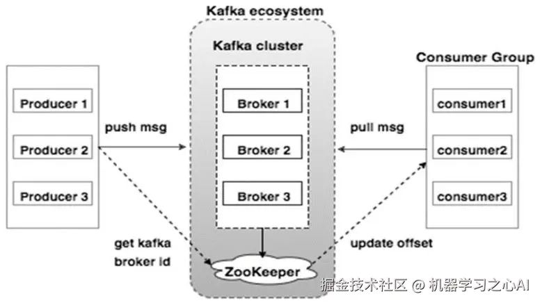Kafka通过Zookeeper管理集群配置,选举leader,以及在Consumer Group发生变化时进行rebalance。