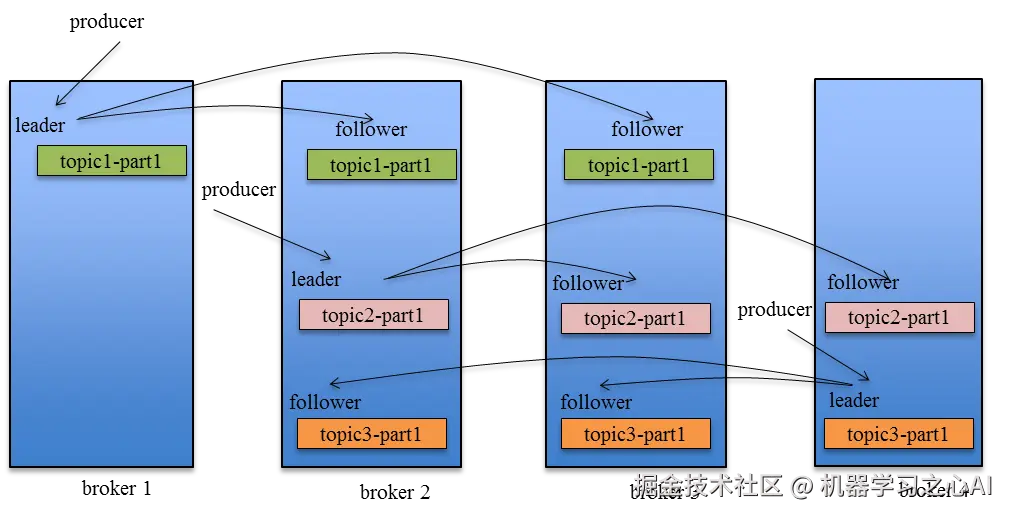 然后无论该Topic的Replication Factor为多少(也即该Partition有多少个Replica),Producer只将该消息发送到该Partition的Leader。