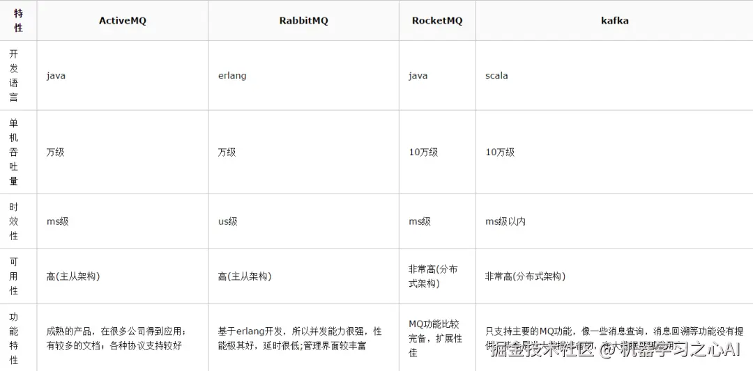 不考虑rocketmq的原因是,rocketmq是阿里出品,如果阿里放弃维护rocketmq,中小型公司一般抽不出人来进行rocketmq的定制化开发,因此不推荐。