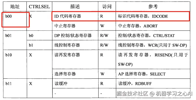 所以,如果我要读取AP IDR的话,就先设置DP SELECT寄存器中的APBANKSEL为0xF,然后直接发读AP命令,ADDR[3:2]为11b.