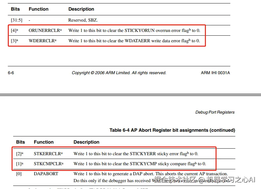 通过写DP中的APBORT[4:1],来清除错误标志位。