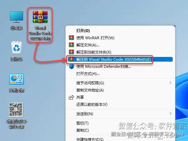 1.鼠标右击【Visual Studio Code 2022(64bit)】压缩包(win11系统需先点击“显示更多选项”)选择【解压到 Visual Studio Code 2022(64bit)】。