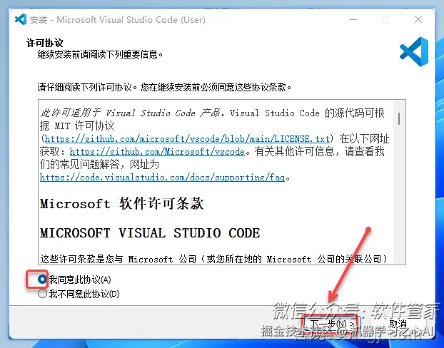 3.勾选【我同意此协议】,点击【下一步】。