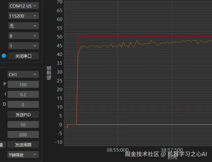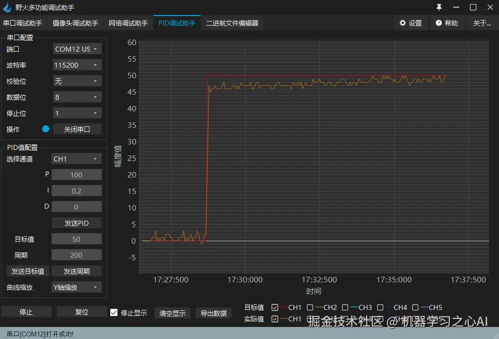 这里使用野火多功能调试助手的"PID调试助手“来进行实验,用于显示PID调节时的电机转速曲线。
