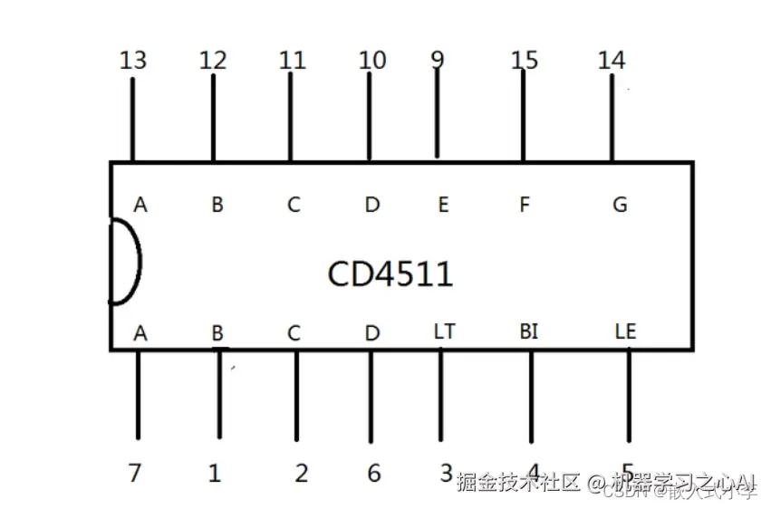 七段数码管驱动:CD4511不仅能够译码BCD码,还可以直接驱动常见的共阳极或共阴极的七段数码管。它通过输出引脚控制七段数码管的各段开关,以实现所需的显示模式。