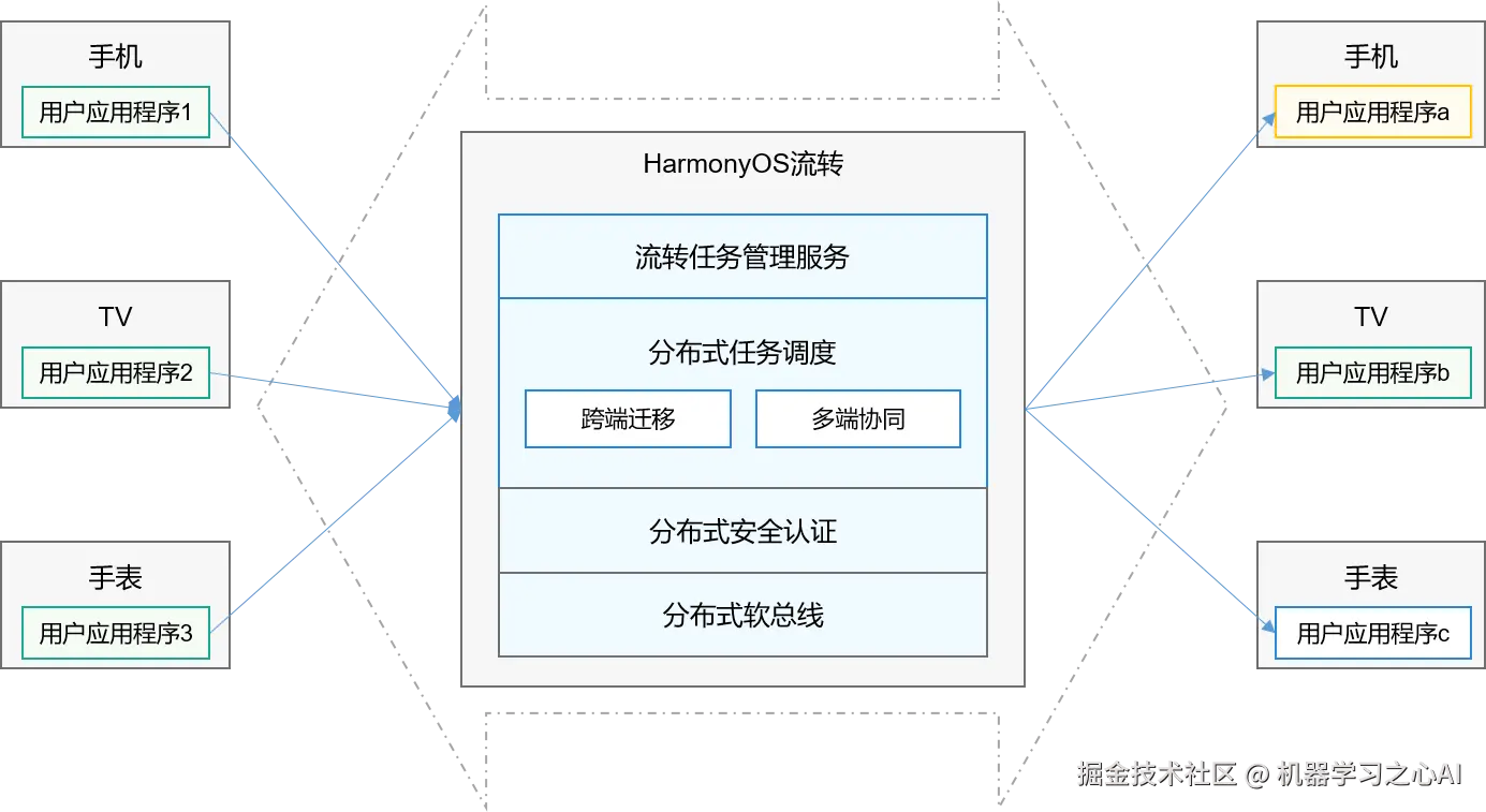 HarmonyOS流转提供了一组API库,可让用户应用程序更轻松、快捷地完成流转体验。HarmonyOS流转架构有如下优势: