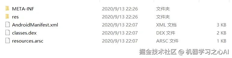 下面我们来反编译apk文件,解压后可以看到,里面是我们熟悉的内容