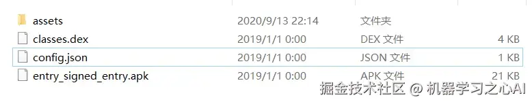 修改它的后缀名为.zip,解压后可以看到里面有熟悉的assets,dex,apk文件等,把这个apk文件安装后发现并不能使用。