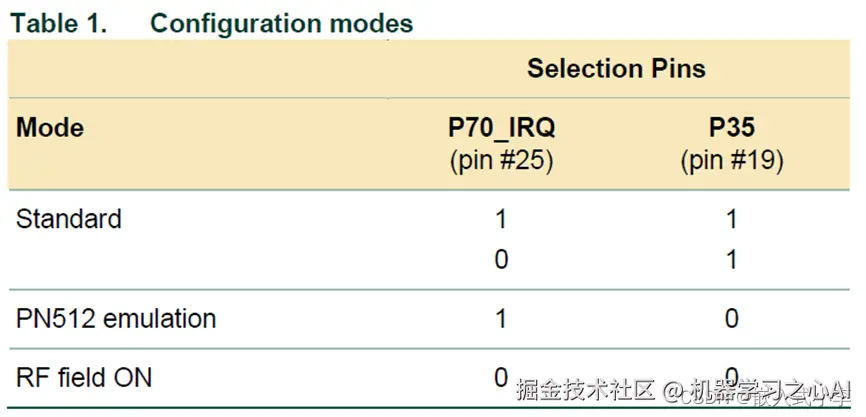 PN532有3种可能的模式,可以通过使用两个GPIO口在IC复位阶段选择: