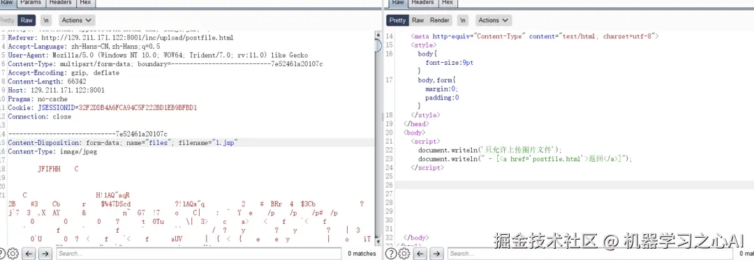 否则提示"只允许上传图片文件",诱导攻击者文件并未上传,其实后端已经将文件上传。
