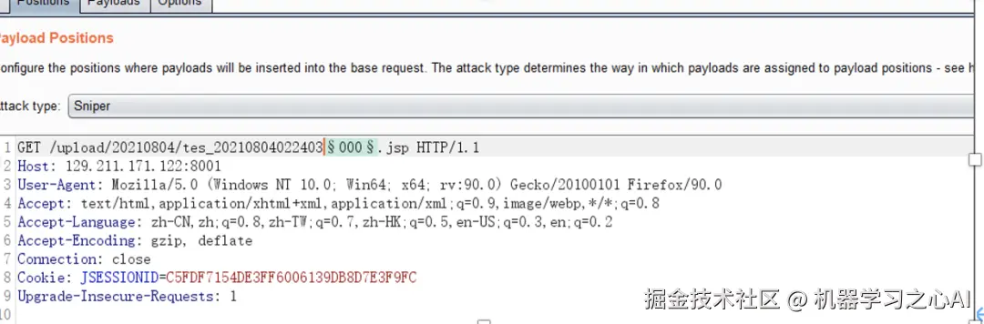 通过burp爆破 设置”jpg”为变量,”jsp”为字典
