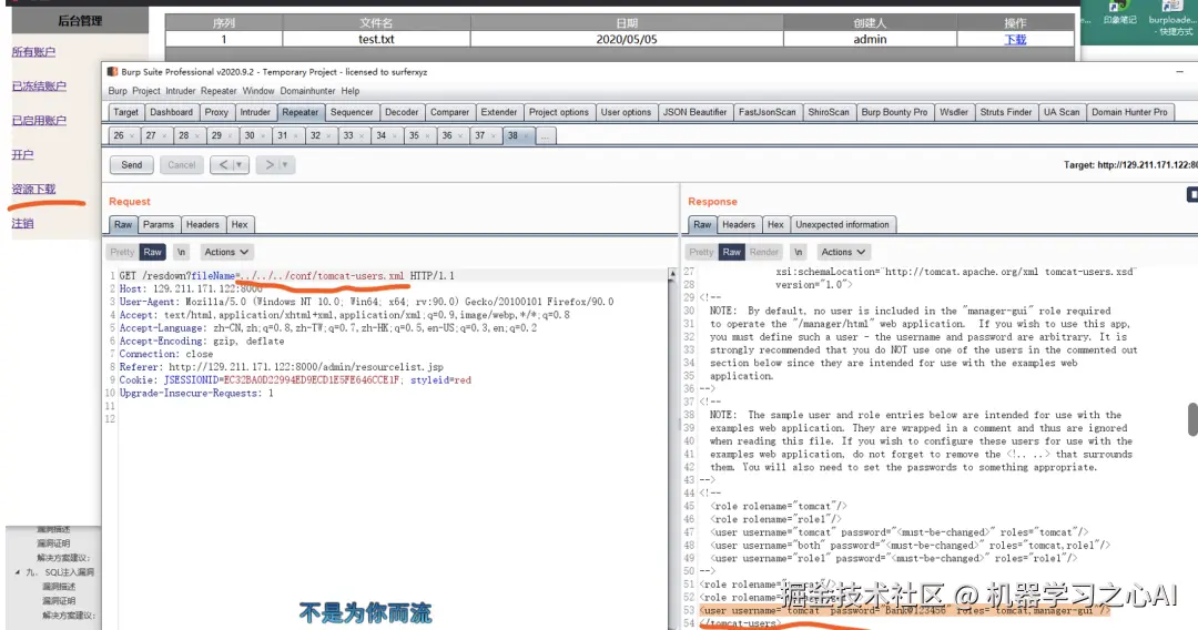 这套系统的getshell方式比较简单,通过任意文件下载漏洞,下载tomcat的配置文件,然后登陆tomcat部署war包即可。