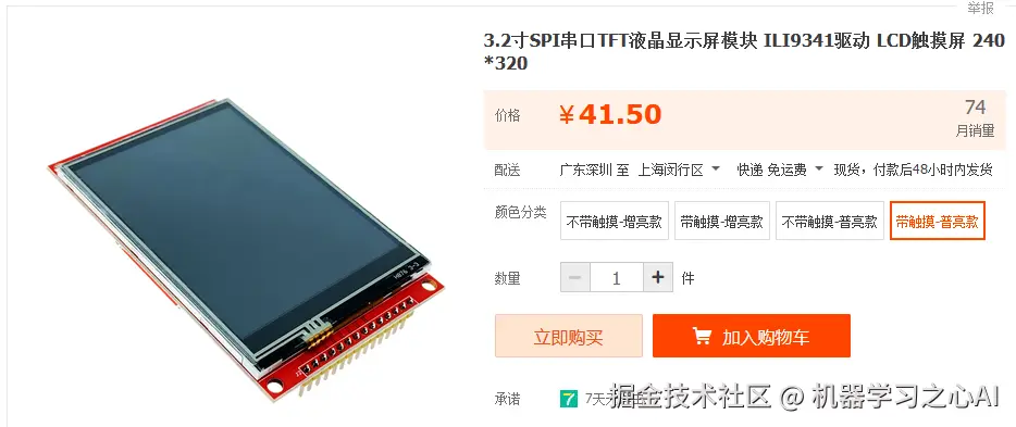 屏幕某宝链接如下:我买的普亮款(触控IC的型号是XPT2046)