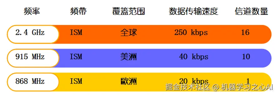 - 工作频率:433MHz、915MHz,2.45GHz和5.8GHz。