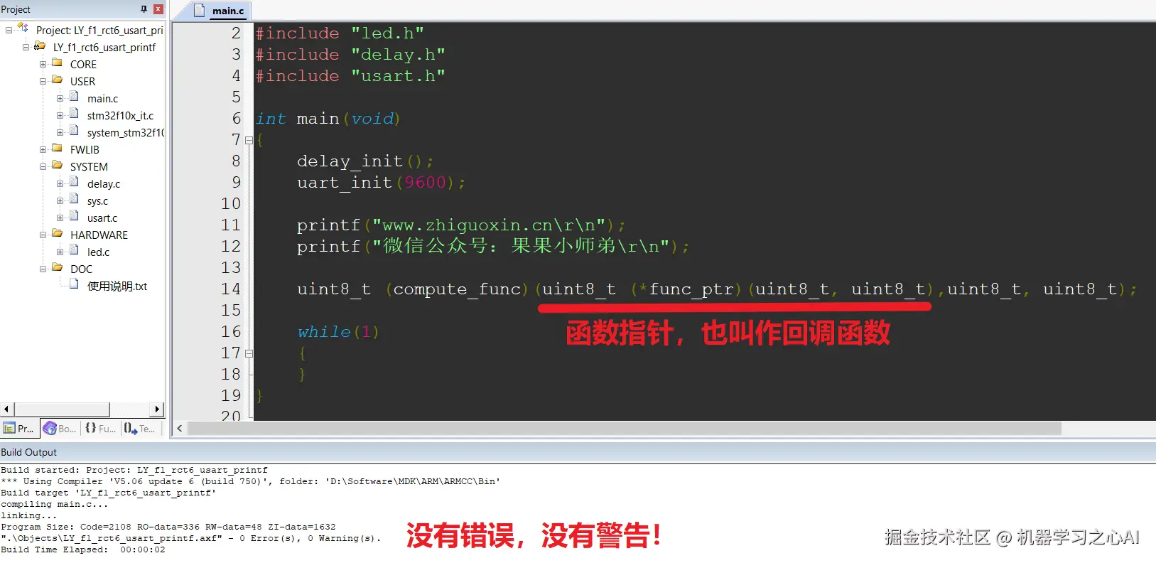 /*开发者写的函数*/ uint8_t (compute_func)(uint8_t (*func_ptr)(uint8_t, uint8_t), uint8_t a, uint8_t b) { return func_ptr(a, b); } int main(void) { delay_init(); uart_init(9600);