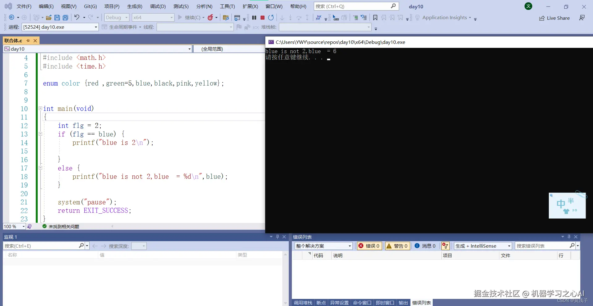 枚举常量: 是整型常量。不能是浮点数。可以是负值。 默认初值从 0 开始,后续常量较前一个常 量 +1.